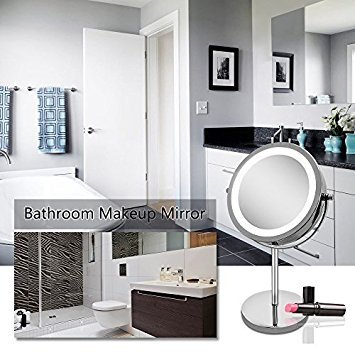 • Vanity Mirror with Light 10x Magnified Lighted Makeup Mirror Double Sided Round Magnifying Mirror 7 Inch Chrome Polished Finish 360 Degree Swivel Shaving Bathroom Travel Mirror