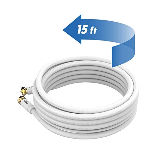 • Ultra Clarity Cables RG6 Coaxial Cable Connector Set 15 FT, CL3 White Coax Cord TV Cable Wire, in-Wall Rated-Digital Audio Video Satellite Cable Extension, Gold Plated Compression Connectors - White