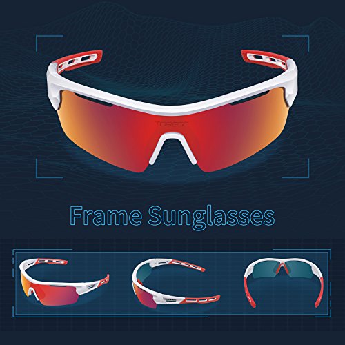 • Torege Polarized Sports Sunglasses for Men Women Cycling Running Driving TR033(White&Red tips&Red lens)