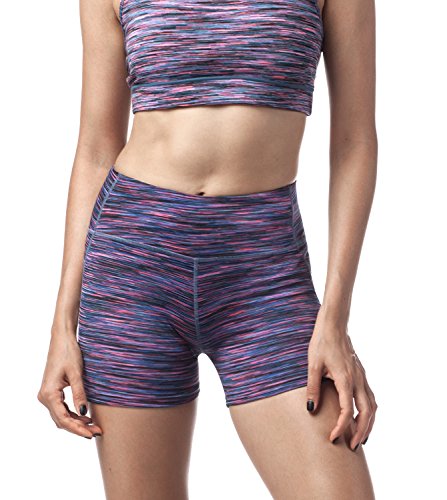 • Lapasa Women's Workout Shorts Tummy Control Running Bike Yoga Hidden Pocket (Small, Purple Space Dye)