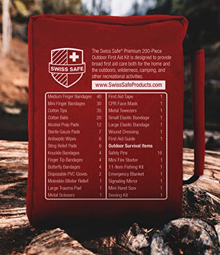Swiss Safe 200-Piece Professional First Aid Kit for Home, Car or Work : Plus Emergency Medical Supplies for Camping, Hunting, Outdoor Hiking Survival, Includes Adhesive Tape, Standard, 200 Piece