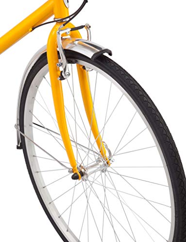 The Schwinn Wayfarer 700c Men's Hybrid bicycle is the perfect bike for cruising the neighborhood, bike path or just going out for a leisurely ride. Equipped with a Schwinn steel retro city frame and fork offers a stylish and upright riding position, 7 speed rear derailleur with SRAM twist shift shifters for quick gear shifting. The alloy wheels are lightweight and strong. Linear pull brakes for sure stopping power. Full fenders and rear carrier for convenient city riding.