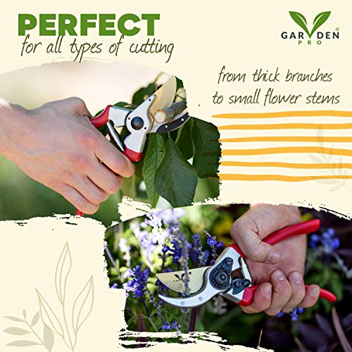 • Professional Titanium Pruning Shears By Garden V Pro - Top Bypass Clippers, Secateurs, Tree Trimmer- Ergonomic Gardening Hand Tool, Effortless Branch Cutting, Safety Lock + Razor Sharp Blade & Spring