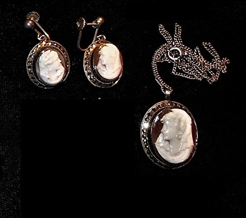 EMENOW CAMEO & Earring Set Wearing Church Veil, Mantilla Veil Vintage 1920s Marcasite Silver, Screw Back, Facing Pair. Excellent Shell Carvings!, womens