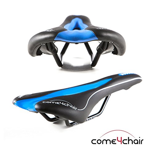 come4chair Mens and Women Bike Seat Road Saddle Seat with Hybrid Gel Cushion - Comfortable Waterproof Cruiser Seat for Exercise, Mountain Bikes and Trek - Universal Fit - Improve Bicycle Seats Comfort - Blue, black