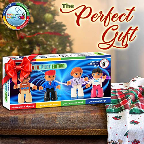 Pythagoras Magnets Magnetic Figures Set of 4 Toddlers Community Action Toy People, Magnetic Tiles Expansion Pack for Boys and Girls Nurse, Builder, Fireman, Police Educational STEM Toys Add on Sets for Magnetic Blocks, A-magnetic Builder Set