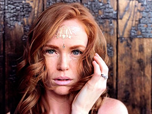 Gold Temporary Tattoos by Golden Ratio Tats, Festival Face Paint, Gold and White Masquerade Tattoos (CirquiTree Mask), unisex-adult (luggage only), Gold With White