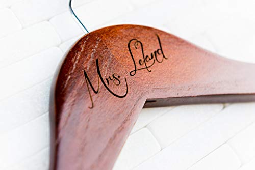 Left Coast Original 6 Wedding Dress Hangers Personalized Calligraphy Bride Bridesmaid Gift for the Couple Matron Maid of Honor Engraved Wood Quick Ship