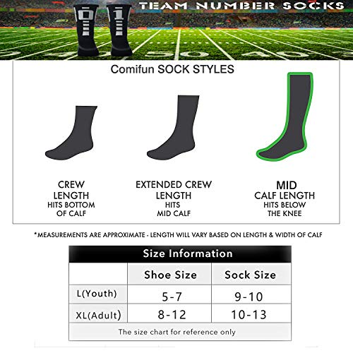 • Number Sports Crew Socks, Kids Teenagers ComiFun NFL Sporter Rugby Custom Team Design Id Cool Breathable Mid Calf Athletic Socks,1 Pair,Black/White 03"" 30",13-17 Years
