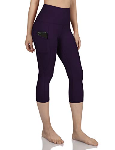 • ODODOS Women's High Waist Yoga Capris with Pockets,Tummy Control,Workout Capris Running 4 Way Stretch Yoga Leggings with Pockets,DeepPurple,X-Large