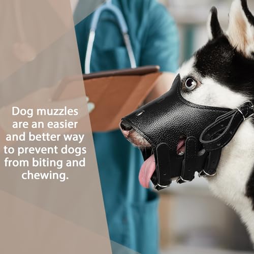 • BARKLESS Dog Muzzle Leather, Comfort Secure Anti-Barking Leather Dog Muzzle for Small Medium Large Dogs, Breathable and Adjustable, Allows Drinking and Panting, Used with Collars