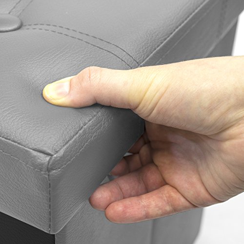 • Sorbus Storage Ottoman Bench with Drawers – Collapsible Folding Bench Chest with Cover – Perfect for Entryway, Bedroom, Cubby Drawer Footstool, Contemporary Faux Leather (Gray)