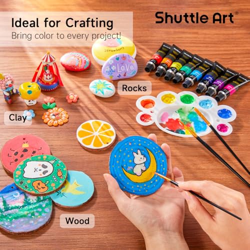 • Shuttle Art Acrylic Paint Set, 16 x12ml Tubes Artist Quality Non Toxic Rich Pigments Colors Great for Kids Adults Professional Painting on Canvas Wood Clay Fabric Ceramic Crafts