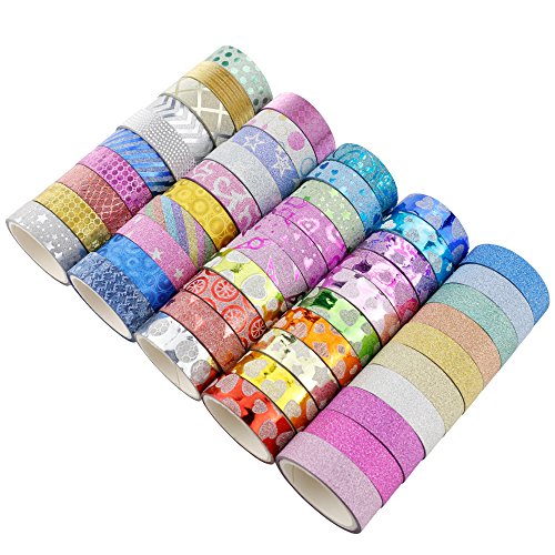 ONEONEY 50 Rolls Glitter Washi Masking Tape Set,Great for DIY Decor Scrapbooking Sticker Masking Paper Decoration Tape Adhesive School Supplies