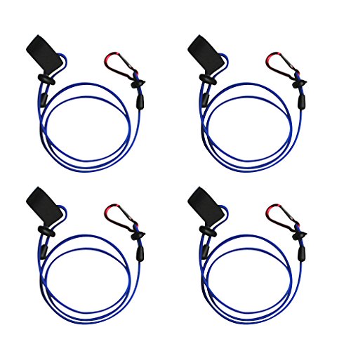 • MagiDeal 4 Pieces 42'' Elastic Kayak Canoe Rowing Boat Paddle Leash Fishing Rod Holder Keeper Safety Lanyard Tether with Carabiner - Choice of Color - Blue