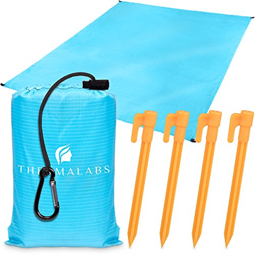 Thermalabs Sandless Beach Mat, Ground Blanket for the Park, Folds to Pocket Size: Take It Anywhere! Anti-Sand Waterproof Parachute Sheet for Concerts, Picnics and Festivals. Ultra Lightweight Tarp (Light Blue)