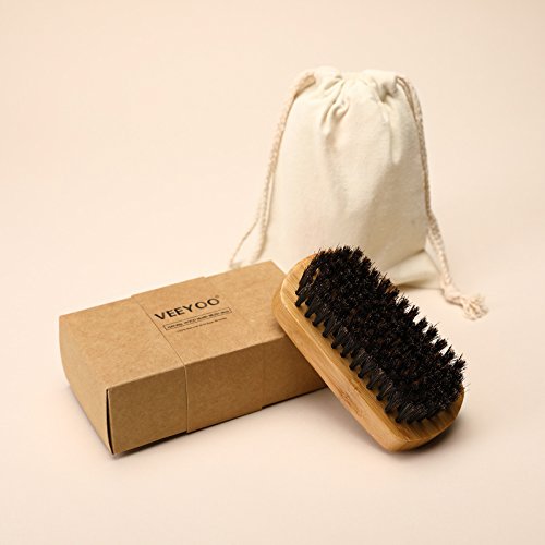 • VEEYOO Beard Brush for Men Wild Boar Bristles Beards Mustache Brush with Gift Box and Cotton Bag Facial Care Brush for Men