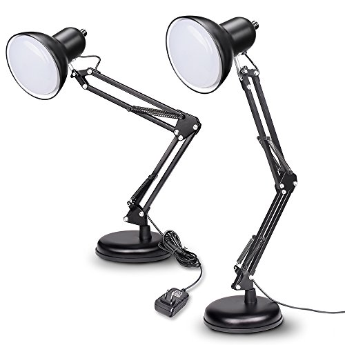 • Emart 15W LED Adjustable Desk Lamp, Heavy Duty Base, Metal Table Lamp, Spring Balanced Swing Arm - 2 Packs