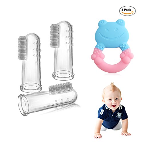 • Baby Toothbrush, 3 pcs Food Grade Silicone Double-sided Oral Massager Baby Finger Toothbrush for Infant&Toddlers,Come with FREE 3 Individual Case and 1 Teether