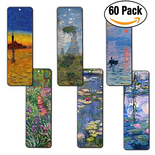 Creanoso Claude Monet Bookmarks (60-Pack) - Famous Paintings Water Lilies - Bookmarks for Books Men Women Kids Boys Girls - Wall Decor