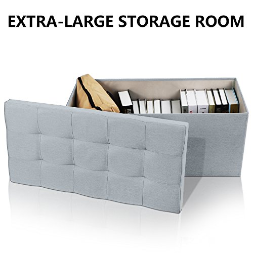 • Lifewit 32inch Extra Large Foldable Storage Ottoman Bench Toy Storage Chest and Footstool Light Blue
