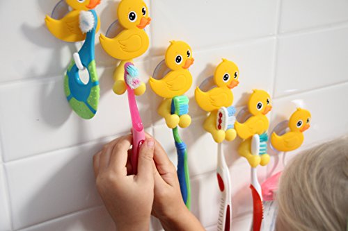 • MiniOwls Bath Combo - Set of 4 Toothbrush Holders & 2 Hooks with Yellow Duck Suction Cups. Best Bathroom Organizer -3% is Donated to Autism Foundation (yellow)
