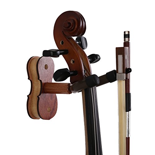 Chichitop Rosewood Violin Hanger With Bow Hanger Hardwood Violin Hook Holder for Home Studio Hook Stand Music Stand, Brown 1