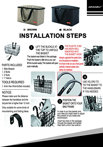 • ONWAY Bike Basket Women Folding Front Handlebar Rear Rack Bicycle Basket Bike Basket Canvas Liner Bag, Brown