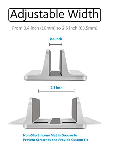 • Adjustable Laptop Stand Dock | Compatible with All Laptops | Vertical Modern Aluminum Custom Fit Desktop Space-Saving & Portable (Silver)
