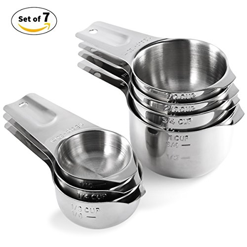 Measuring Cups: U-Taste 18/8 Stainless Steel Measuring Cups Set of 7-Piece: 1/8 cup, 1/4 cup, 1/3 cup, 1/2 cup, 2/3 cup, 3/4 cup, 1 cup Dry and Liquid Ingredients, Silver