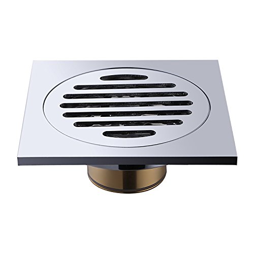 • Mural Art 4x4 Inch Brass Shower Floor Drain Square Bathroom Tile Insert Floor Drainer with Removable Strainer Cover Chrome Finish Anti-clogging for Kitchen Washroom (Style 2)