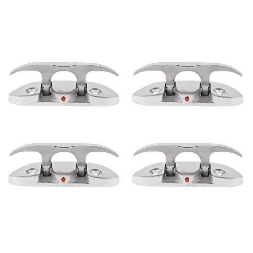 • MonkeyJack 4 Pieces 4.65" Folding Cleat Mount Mooring Deck Cleat Dock Cleat Anchor Cleat High Polished 316 Marine Grade Stainless Steel Boat Hardware