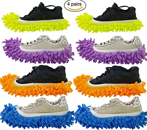 • M-jump 8 PCS 4 Pairs duster Mop Slippers Shoes Cover , Multi Function Chenille Fibre Washable Dust Mop Slippers Floor Cleaning Shoes for Bathroom, Office, Kitchen, House Polishing Cleaning