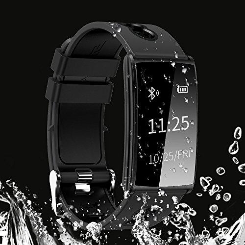 Guzack Fitness Tracker Bracelet With Wrist Based Heart Rate Blood Pressure Monitor Bluetooth Call Remind Remote IP68 Waterproof Smart Watch Wireless Pedometer Band Sleep Monitor For Android iOS Phone, black