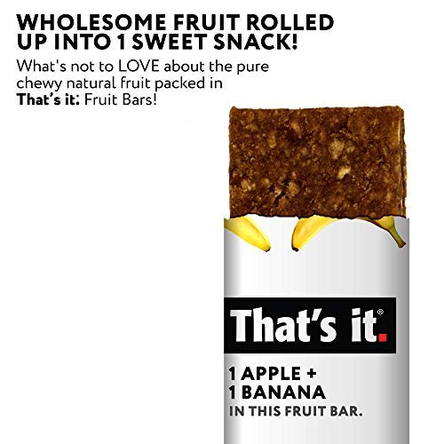 • That's it Apple + Banana 100% Natural Real Fruit Bar, Best High Fiber Vegan, Gluten Free Healthy Snack, Paleo for Children & Adults, Non GMO Sugar-Free, No Preservatives Energy Food (12 Pack)