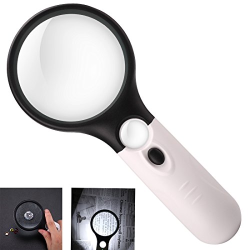 • Lighted Magnifier Glass Made, Dicfeos Handheld Magnifying Glass with Light 3X 45X Illuminated Loupe Lens for Seniors Reading, Book, Page and Hobbies, Great Tool for Visual Impairment, Black White