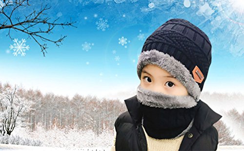 • Winter Beanie Scarf for Boys Girls (5-14 Years) Warm Snow Knit Hats Windproof HINDAWI Circle Scarf Kids Slouchy Skull Cap Black