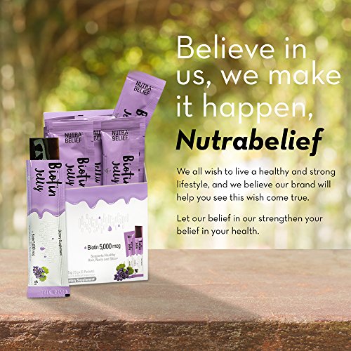 NUTRABELIEF Biotin Jelly for Hair Skin Nails - 5000 mcg of Grape Flavored Edible Vitamins - Easier To Take Than Pills, Gummies, or Liquid - Supplement for Hair Growth, Radiant Skin, Strong Nails - 21 Packets