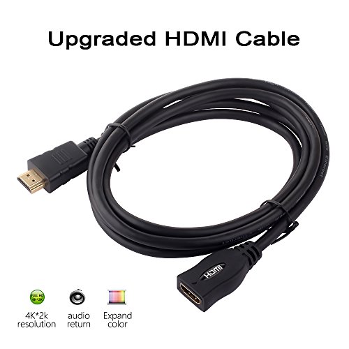 • HDMI Extension Cable, Techkey 6 Feet High Speed HDMI Extension Cable Male to Female with Ethernet Support 4K Resolution for Blu Ray Player, 3D Television,HDTV (Black)