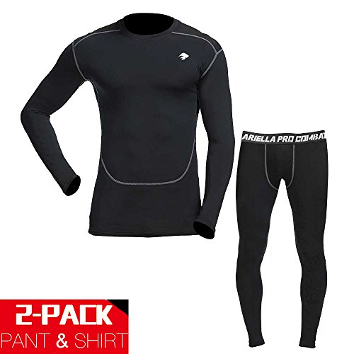 ariella Men's Compression Quick Dry Gear Baselayer Sets Running Jogging Gym Workout Fitness Exercise Capris Outfit Sets, mens, Black, Large