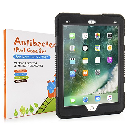 • ACEGUARDER iPad 2017 iPad 9.7 inch Case, Shockproof Impact Resistant Protective Case Cover Full Body Rugged for Kids with Kickstand for Apple New iPad 9.7 inch 2017 Tablet, Black