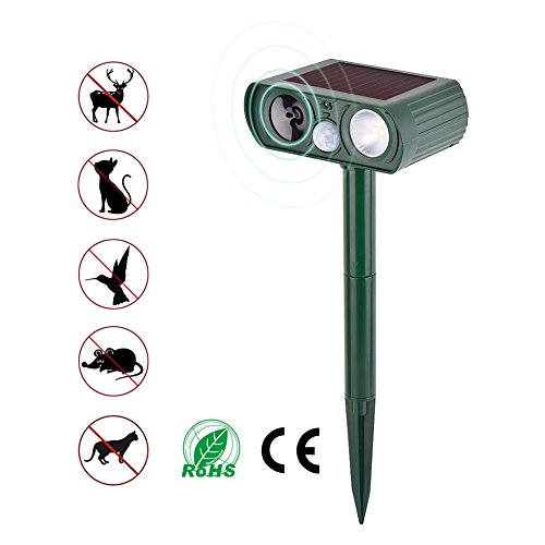 • Yunt Ultrasonic Animal Pest Repeller Outdoor Waterproof Solar Powered Animal Repeller with Lights Electronic Animal Scarer No Hurt to Pets Dogs Cats