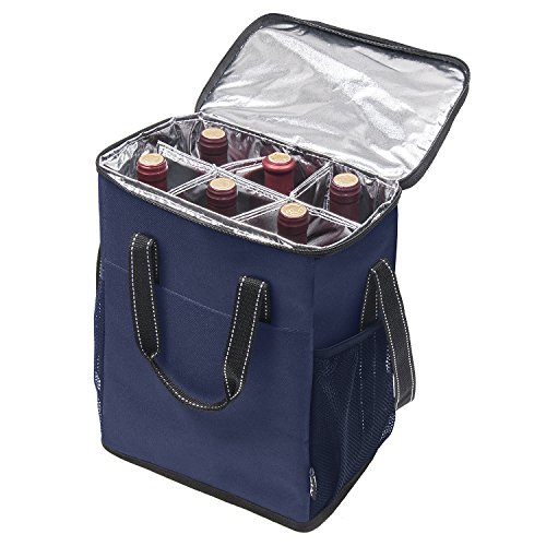 Kato 6 Bottle Wine Carrier - Insulated Wine Carrying Case Cooler Tote Bag Travel or Picnic, Perfect Wine Lover Gift, Blue, Blue - 6 bottle