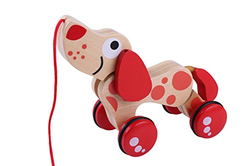 STS SUPPLIES LTD Wooden Pull Toy Puppy Dog Walking Dog Early Childhood Development for 1 Year Kids Baby Boy Girl Unique & eBook, Red, Natural