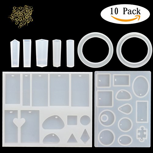 vorey 9 Pack Jewelry Casting Silicone Molds for DIY Jewelry Craft Making,DIY enthusiasts,Come with 50 PCS Screw Eye Pins