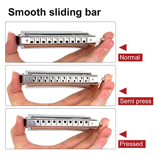 • Chromatic Harmonica French Harp Mouth Organ Phosphor Bronze Key of C 10 Holes 40 Tone with Case From Kmise