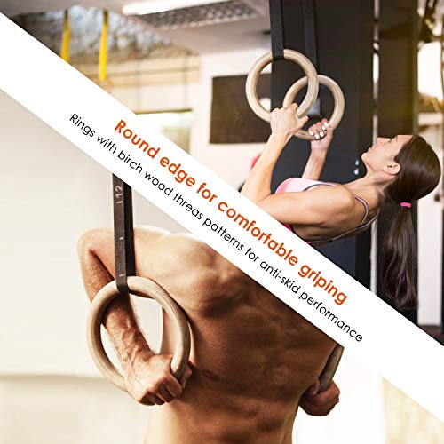 • femor Gym Rings, Wood Gymnastic Rings with Adjustable Straps, Heavy Duty Gym Equipment for Cross-Training Workout, Strength Training, Gymnastics, Fitness, Pull Ups and Dips