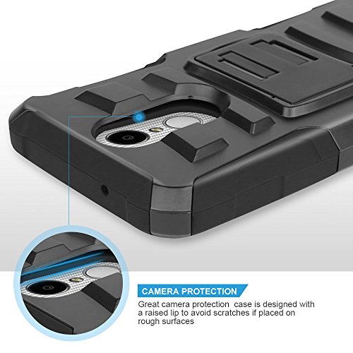 • TJS LG ARISTO 2/Tribute Dynasty/REBEL 3 LTE/Zone 4/Fortune 2/K8 2018/Risio 3 Case, Dual Layer Hybrid Shock Absorbing Impact Resist Rugged Kickstand Armor Phone Case with Belt Clip Holster (GreenBlack)