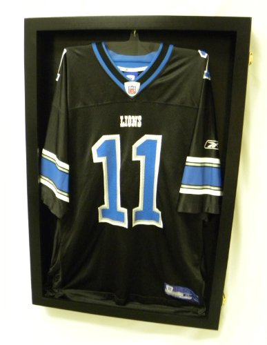 • XX Large Football/Hockey Uniform Jersey Display Case frame, UV Protection ULTRA CLEAR, LOCKS (Black Finish) P302BJ