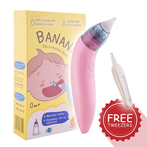 LYUN Baby Nasal Aspirator - Safe Hygienic and Battery Operated Nose Cleaner with 2 Sizes of Nose Tips and Oral Snot Sucker for Newborns and Toddlers, USB Charging, Giving Tweezers for Free, Pink